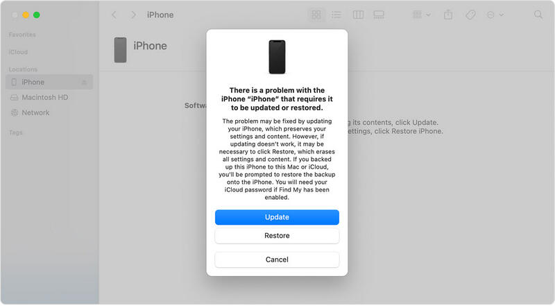 - Step 3: Once iTunes or Finder (macOS) on your computer detects your iPhone in Recovery Mode, a pop-up window will appear. In this window, click the "Restore" button. iTunes or Finder will begin downloading the latest iOS system firmware for your iPhone. Once the download is complete, it will automatically begin the recovery process. This process will erase all data and settings on the device and restore your iPhone to the state it was in when you first bought it.